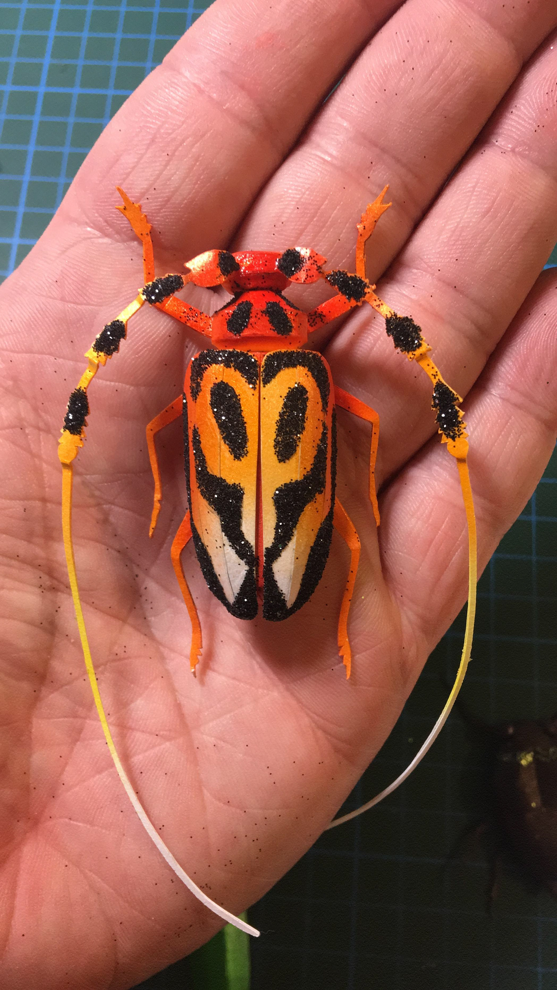The 3-dimensional "stone" body is made out of cardboard and grey glitter on the outside surface and white glitter for the inside crystal surface. The perfect mix of drawing and crafting. Love it!