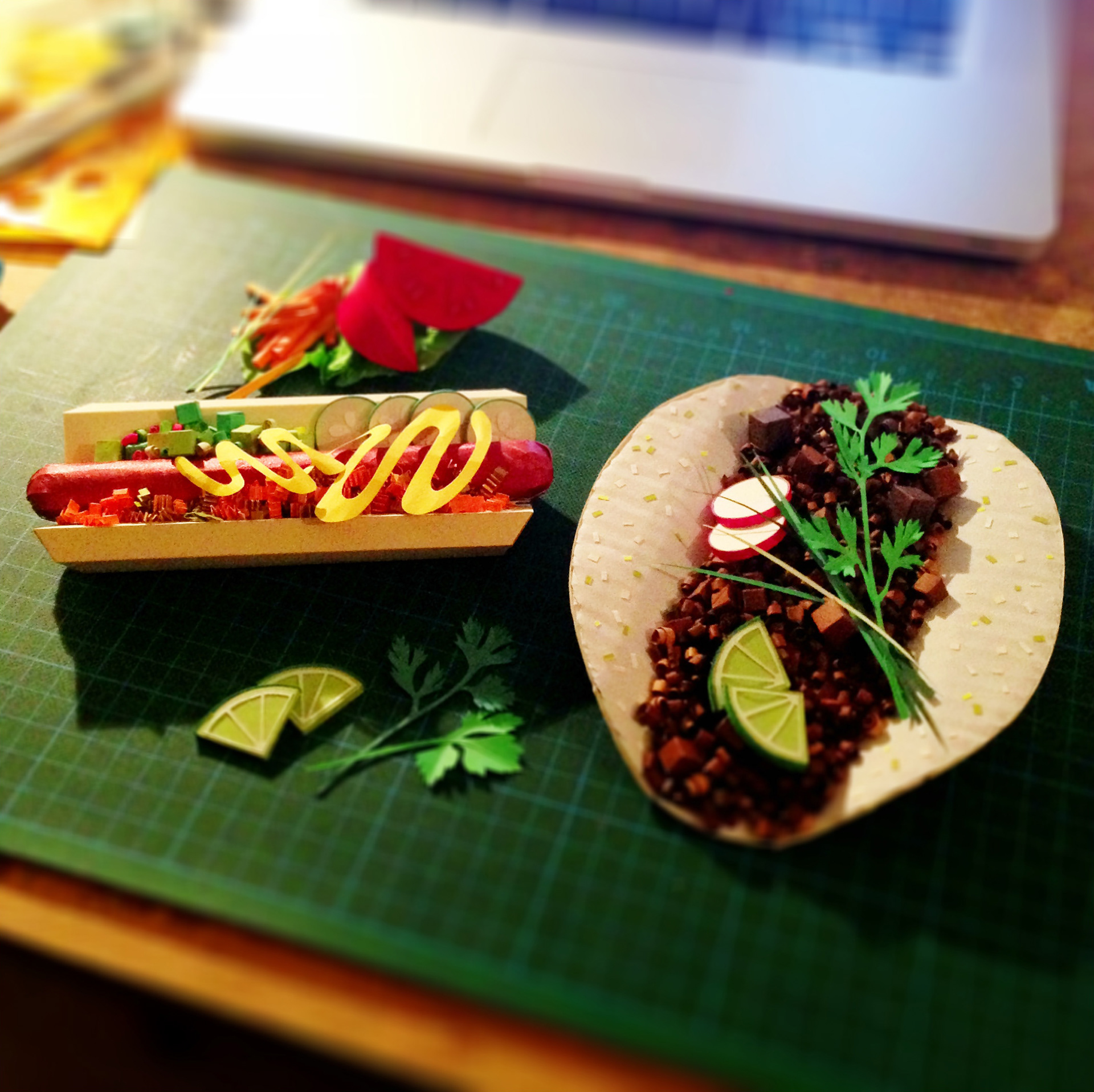 Nöjesguiden magazine commissioned me to create paper craft illustrations for a 2-page article about fast food. Photos were taken by Caroline Wimmer.