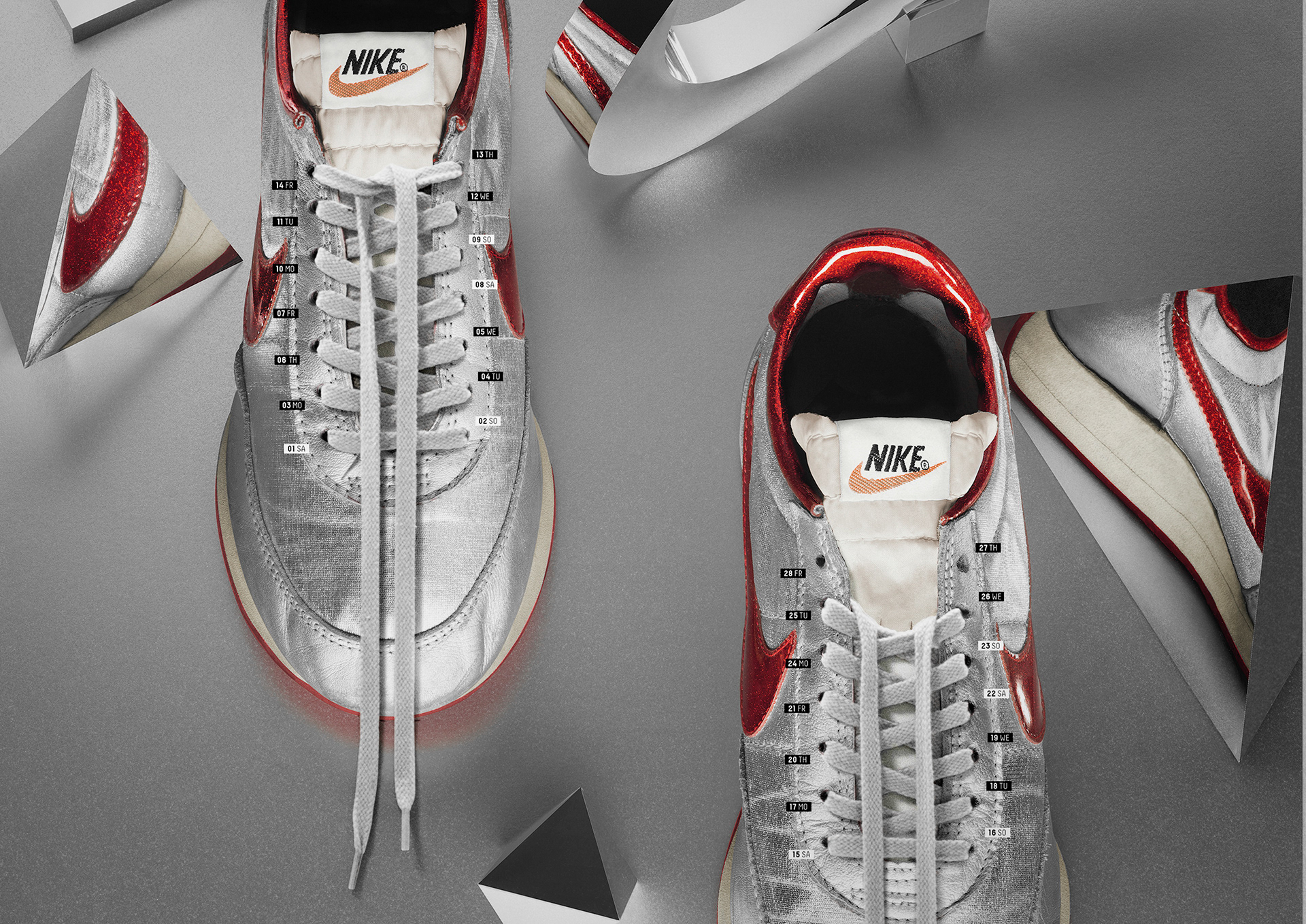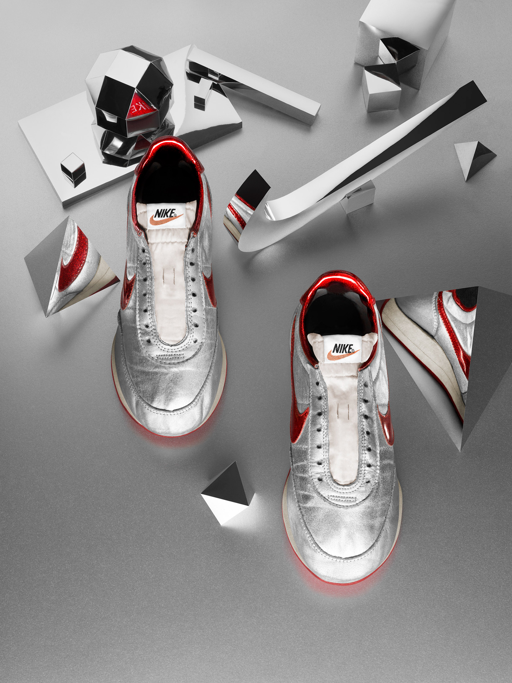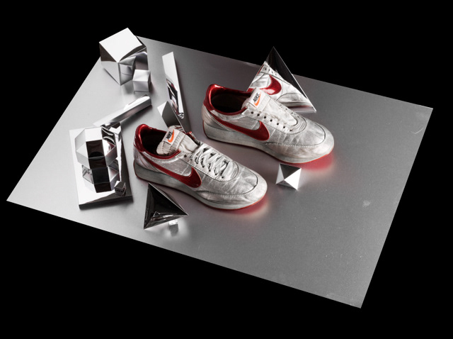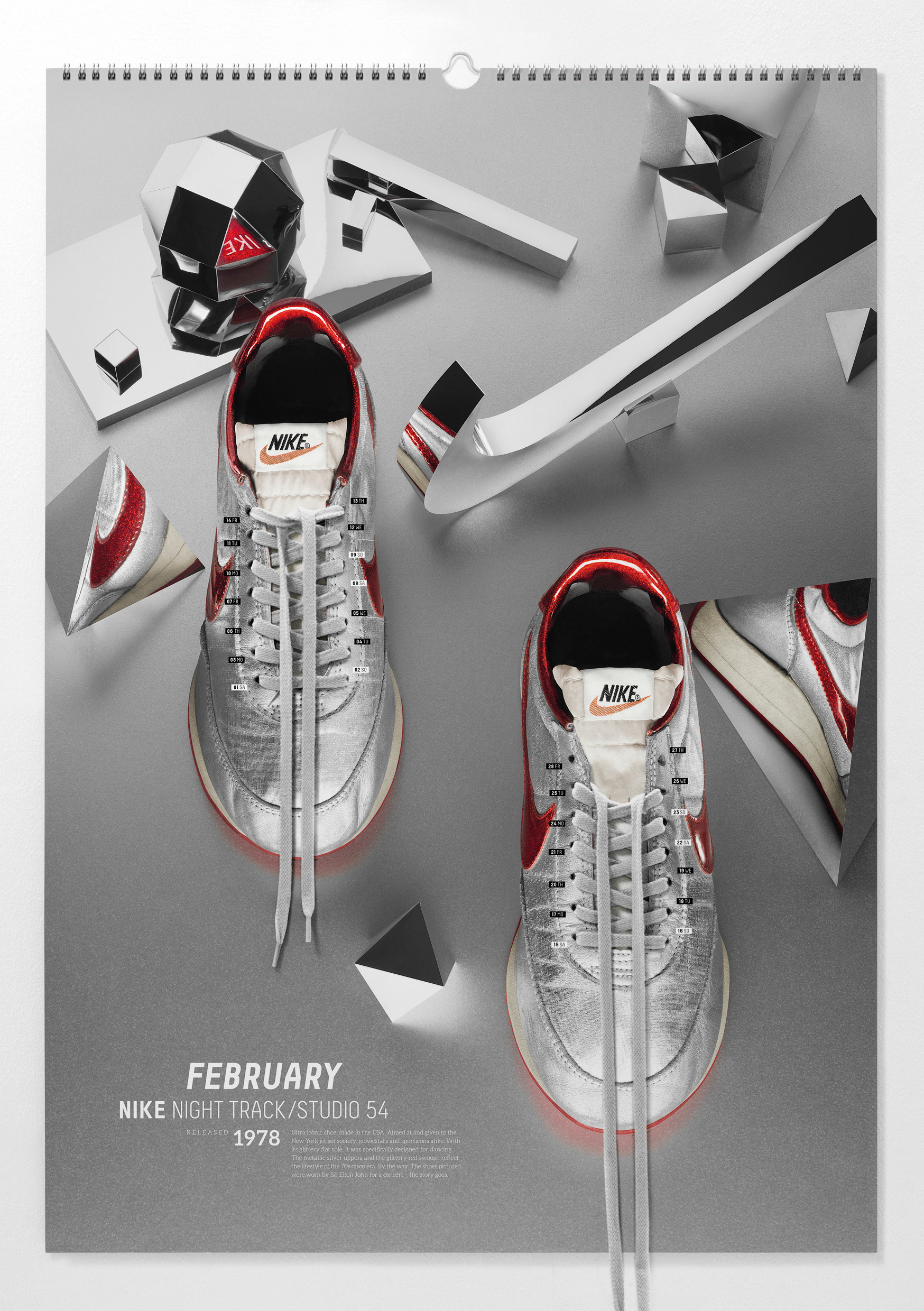 Photo genius Manuel Mittelpunkt shot the February page for Asphaltgold's 2014 calendar of vintage sneakers. I created the geometrical set design elements out of paper and and mirror film.